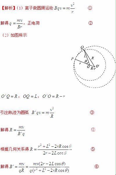 (3)换用静电偏转法引出离子束,维持通道内的原有磁感应强度B不变,在内外金属板间加直流电压,两板间产生径向电场,忽略边缘效应。为使离子仍从P点进入,Q点射出,求通道内引出轨迹处电场强度E的方向和大小
