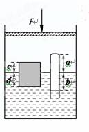 如图所示,在柱形容器中装有部分水,容器上方有一可自由移动的活塞。容器水面浮有一个木块和一个一端封闭、开口向下的玻璃管,玻璃管中有部分空气,系统稳定时,玻璃管内空气柱在管外水面上方的长度为a,空气柱在管外水面下方的 长度为b,水面上方木块的高度为c,水面下方木块的高度为d。现在活塞上方施加竖直向下、且缓缓增大的力F,使活塞下降一小段距离(未碰及玻璃管和木块),下列说法中正确的是( )