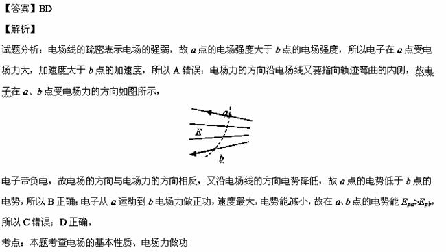 如图所示,实线为某电场的电场线,虚线为电子仅在电场力作用下的运动轨迹, a、b为轨迹上两点,则( )