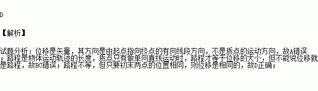 关于质点的位移和路程,下列说法中正确的是( )