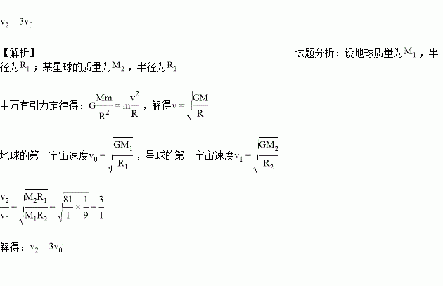 已知某星球的质量是地球质量的81倍,半径是地球半径的9倍。在地球上发射一颗卫星,其第一宇宙速度为V0,则在某星球上发射一颗人造卫星,其发射速度最小是多少