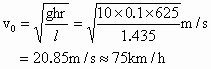一段铁路转弯处,内外轨高度差为h=10cm,弯道半径为r=625m,轨距l=1435mm求这段弯道的设计速度