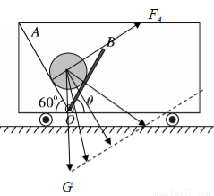 µÄ¹â»¬Ð±ÃæOA£¬¹â»¬µ²°åOB¿ÉÈÆ×ªÖáOÔÚÊúÖ±Æ½ÃæÄÚת¶¯¡£ÏÖ½«Ò»ÖØÁ¦ÎªGµÄÔ²Çò·ÅÔÚÐ±ÃæÓëµ²°åÖ®¼ä£¬µ²°åÓëË®Æ½ÃæµÄ¼Ð½Ç