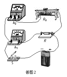 (2)图17为该同学根据上述设计的实验电路测出多组数据并绘出的I1-I2图线(I1为电流表A1的示数,I2为电流表A2的示数),则由图线可以得到被测电池的电动势E= V,内阻r= Ω。(保留两位有效数字)