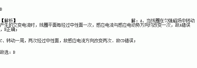 D.线圈转动一周,感应电流和感应电动势方向都只改变一次