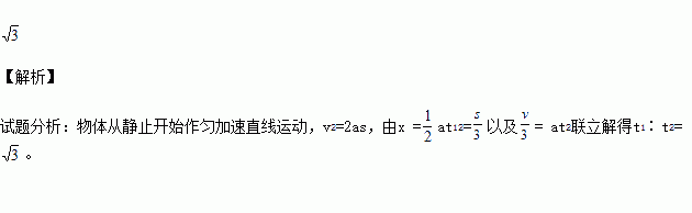 一物体从静止开始作匀加速直线运动,当速度为v时,其位移为s。它的位移为 s/3,所用时间为t1 ;当它的速度为v/3时,所用时间为t2。则t1∶t2=