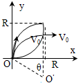 解答 解:如图所示,电子在磁场中做匀速圆周运动,半径为R=$\frac{mv}{Be}$.在由O点射入第I象限的所有电子中,沿y轴正方向射出的电子转过$\frac{1}{4}$圆周,速度变为沿x轴正方向,这条轨迹为磁场区域的上边界.下面确定磁场区域的下边界.设某电子做匀速圆周运动的圆心O′与O点的连线与y轴正方向夹角为θ,若离开磁场时电子速度变为沿x轴正方向,其射出点(也就是轨迹与磁场边界的交点)的坐标为(x,y).由图中几何关系可得![]()