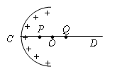 如图所示,电荷q均匀分布在半球面上,球面的半径为R,CD为通过半球顶点C与球心O的轴线。P、Q为CD轴上在O点两侧,离O点距离相等的二点。如果是带电量为Q的均匀带电球壳,其内部电场强度处处为零,电势都相等。则下列判断正确的是( )