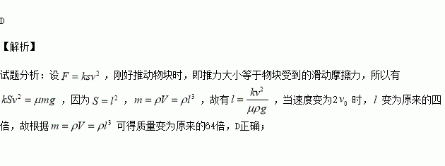 时,刚好能推动用同一材料做成的另一正方体物块,则该物块的质量为( )