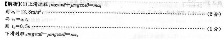 ⑵ 物体从开始到再次返回斜面底端所需的时间