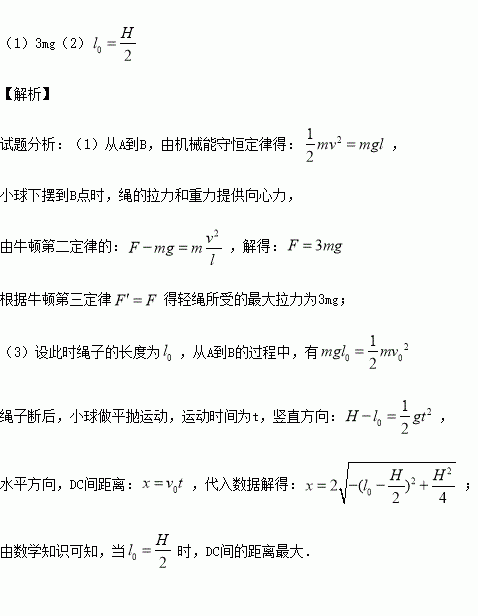 如图所示,一不可伸长的轻绳上端悬挂于O点,另一端系有质量为m的小球,现将小球拉到A点,(保持绳绷直且水平)由静止释放,当它经过B点时绳恰好被拉断,小球平抛后落在水平地面上的C点,地面上的D点与OB在同一竖直线上,已知O点离地高度为H,重力加速度大小为g,不计空气阻力影响,求