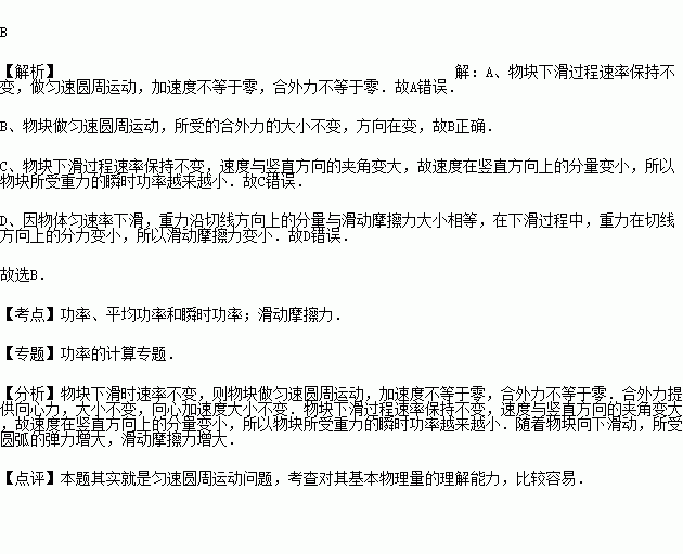 开口向上的半球形曲面的截面如图所示,直径AB水平,一小物块在曲面内A点以某一速率开始下滑,曲面内各处动摩擦因数不同,因摩擦作用物块下滑时速率不变,则下列说法正确的是( )