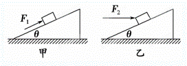 如图,质量为m的物体置于倾角为θ=37°的固定斜面上,物体与斜面之间的动摩擦因数为μ=0.1,如图甲所示,先用平行于斜面的推力F1作用于物体上,使其能沿斜面匀速上滑.若改用水平推力F2作用于物体上,也能使物体沿斜面匀速上滑,如图乙所示,求两次力之比=?(sin37°=0.6,cos37°=0.8)