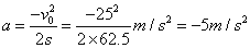 罗长高速公路最大限速为30m/s, —辆小车以25m/s的速度在该路段紧急刹车,滑行距离为62.5m。(汽车刹车过程可认为做匀减速直线运动)