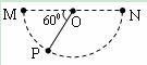 如图,M、N和P是以MN为直径的半圆弧上的三点,O为圆心,∠MOP=600,等量、异号两个点电荷分别置于M、N两点,这时O点电场强度的大小为E1;若将N点处的点电荷移至P点,则O点的场场强大小变为E2,E1与E2之比为