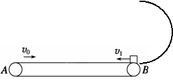 如图所示,一半径为R=0.5m的半圆型光滑轨道与水平传送带在B点连接,水平传送带AB长L=8 m,向右匀速运动的速度为v0。一质量为1 kg的小物块(可视为质点)以v1=6 m/s的初速度从传送带右端B点向左冲上传送带,物块再次回到B点后恰好能通过圆形轨道最高点,物块与传送带间的动摩擦因数μ=0.45,g取10 m/s2。求物块相对地面向左运动的最大距离x及传送带的速度大小v0。