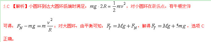 如图,一质量为M的光滑大圆环,用一细轻杆固定在竖直平面内;套在大圆环上的质量为m的小环(可视为质点),从大圆环的最高处由静止滑下,重力加速度为g。当小圆环滑到大圆环的最低点时,大圆环对轻杆拉力的大小为: