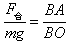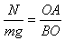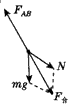 解:分析小球受力,如图所示,将重力mg与环的弹力N合成,其合力为F,则F大小等于FAB,方向与FAB相反。将mg、Fg、N建立一矢量三角形,此三角形与几何三角形△ABO相似。则: