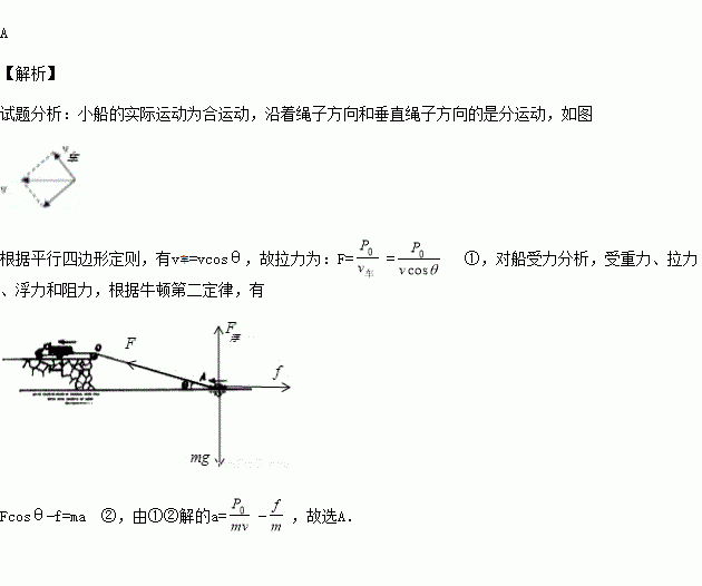 如图所示,卡车通过定滑轮以恒定的功率P0拉绳,牵引河中的小船沿水面运动,已知小船的质量为m,沿水面运动时所受的阻力为f且保持不变,当绳AO段与水平面夹角为θ时,小船的速度为v,不计绳子与滑轮的摩擦,则此时小船的加速度等于( )