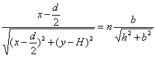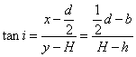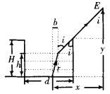 如图所示,水平地面上有一个圆槽,直径d=1.00m,高H=0.50m,底面圆心为O.一个人站在地面上B点,眼睛处于A点.BO间的距离x=2.10 m,AB高y=1.70 m.现在往槽内倒人折射率n=1.60的透明液体后,在A点恰能看到槽底中心O点.求液体的高度h.