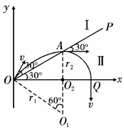 ½ÇµÄ·½Ïò´¹Ö±´Å³¡½øÈëÇøÓò¢ñ£¬ÖÊ×ÓÏȺóͨ¹ý´Å³¡ÇøÓò¢ñºÍ¢òºó£¬Ç¡ºÃ´¹Ö±´òÔÚxÖáÉϵÄQµã£¨Í¼ÖÐδ»³ö£©£¬Ôò£º