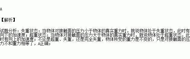 D.物体做自由落体运动时处于完全失重状态,所以做自由落体运动的物体不受重力作用