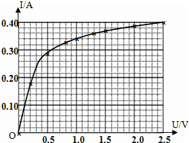 | 电压U/V | 0 | 0.20 | 0.50 | 0.80 | 1.00 | 1.30 | 1.50 | 2.00 | 2.50 |