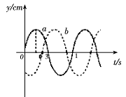 一列简谐横波沿直线传播,先后通过a,b两点,两点平衡位置时的距离L=4.42m(λ<L<2λ)。图中实、虚两条曲线分别表示平衡位置在a、b两点处质点的振动曲线。求:①此列波的频率;②此列波的传播速度大小。