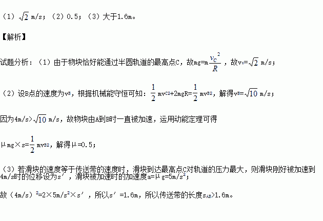 £¨3£©ÈôÖ»¸Ä±ä´«ËÍ´øµÄ³¤¶È£¬Ê¹»¬¿é»¬ÖÁÔ²»¡¹ìµÀµÄ×î¸ßµãC ʱ¶Ô¹ìµÀµÄѹÁ¦×î´ó£¬´«ËÍ´øµÄ³¤¶È