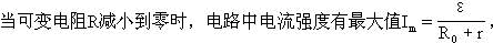 正确解答:电流经过电阻R0,电流能转换成内能,R0上功率决定于电流强度大小和电阻值,即P=I2R0,所以当电流强度最大时,R0上得到最大功率.由纯电阻的闭合电路欧姆定律,有