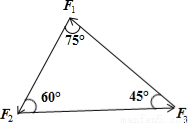 一个质点在三个共点力F1、F2、F3的作用下处于平衡状态,如图所示。则它们的大小关系是![]()