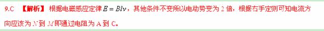 如图所示,在磁感应强度为B、方向垂直纸面向里的匀强磁场中,金属杆MN在平行金属导轨上以速度v向右匀速滑动, MN中产生的感应电动势为El,若磁感应强度增为2B,其他条件不变,MN中产生的感应电动势变为E2。则通过电阻R的电流方向及E1与E2之比El∶E2分别为