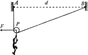 ÌØÖÖ±ø¹ýɽ¹ÈµÄÒ»ÖÖ·½·¨¿É¼ò»¯ÎªÍ¼Ê¾Çé¾°£®½«Ò»¸ù³¤Îª2dµÄ²»¿ÉÉ쳤µÄϸÉþÁ½¶Ë¹Ì¶¨ÔÚÏà¾àΪdµÄA¡¢BÁ½µÈ¸ßµã£¬ÉþÉϹÒһС»¬ÂÖP£¬Õ½Ê¿ÃÇÏ໥ÅäºÏ£¬¾Í¿ÉÑØ×ÅÉþ×Ó»¬µ½¶ÔÃæ£®ÈçͼËùʾ£¬Õ½Ê¿¼×ÓÃˮƽÁ¦FÀס»¬ÂÖ£¬ÖÊÁ¿ÎªmµÄսʿÒÒµõÔÚ»¬ÂÖÉÏ£¬½ÅÀëµØ£¬´¦ÓÚ¾²Ö¹×´Ì¬£¬´ËʱAPÊúÖ±£®È»ºóսʿ¼×½«»¬ÂÖ´Ó¾²Ö¹×´Ì¬ÊÍ·Å£¬Èô²»¼Æ»¬ÂÖĦ²Á¼°¿ÕÆø×èÁ¦£¬Ò²²»¼Æ»¬ÂÖµÄÖÊÁ¿£¬Çó£º