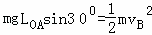 (1)由题意知,从O到B,机械能守恒,有![]()