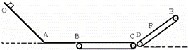 (2)试分析开动两传送带能否使从O点静止释放的物块在倾斜传送带DE上滑动 的最大高度低于F点?若能,应该怎样开动两传送带?