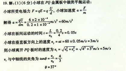 (1)试求小球刚穿出平行金属板PQ的速度;