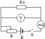 某同学用图示电路测量电阻Rx的阻值,当电压表的示数为4.8V时,电流表示数为1.2mA.由这组数据,他发现所用测量方法不对.仔细观察电表表盘,了解到电压表的内阻为6kΩ,试求Rx的阻值.