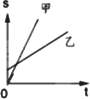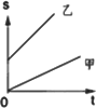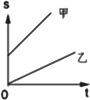 甲、乙两物体朝同一方向做匀速直线运动,已知甲的速度大于乙的速度,t=0时,乙在甲之前一定距离处,则两个物体运动的位移图象应是:( )![]()