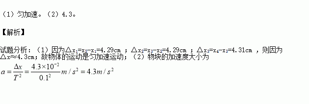 (1)根据表中的数据判断该物体的运动属于________(选填“匀速”、“匀加速”或“匀减速”运动。