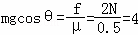 | 解答: | 解:A、B、D、设斜面的倾角是θ,物体的质量是m,物体向上运动的过程中受到重力、支持力和向下的摩擦力;物体向下滑动的过程中受到重力.支持力和向上的摩擦力,由图象可知物体向上滑动的过程中,EK1=25J,EK2=0J,位移x=5m,下滑回到原位置时的动能,EK3=5J 向上滑动的过程中,由动能定理得:EK2﹣EK1=﹣mgsinθ•x﹣fx, 向下滑动的过程中,由动能定理得:EK3﹣EK2=mgsinθ•x﹣fx, 代入数据解得:f=2N mgsinθ=3N 又:f=μmgcosθ 所以: