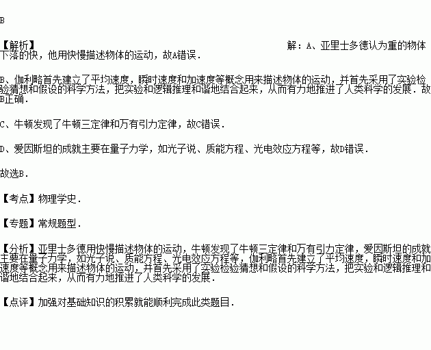 A.亚里士多德 B.伽利略 C.牛顿 D.爱因斯坦
