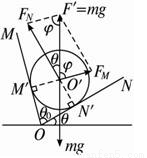 两光滑平板MO、NO构成一具有固定夹角θ0=75°的V形槽,一球置于槽内,用θ表示NO板与水平面之间的夹角,如图所示。若球对板NO压力的大小正好等于球所受重力的大小,则下列θ值中哪个是正确的( )