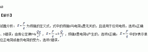 电场强度的定义式为
