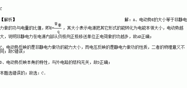A.电源是把其他形式的能转化为电能的装置,这种转化是通过非静电力做功来实现的