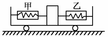 如下图所示,底板光滑的小车上用两个量程为20 N,完全相同的弹簧秤甲和乙系住一个质量为1 kg的物块,在水平地面上,当小车做匀速直线运动时,两弹簧秤的示数均为10 N,当小车做匀加速直线运动时,弹簧秤甲的示数变为8 N,这时小车运动的加速度大小是( )