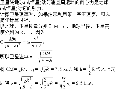一人造地球卫星在距地面高度等于地球半径一半的圆周轨道上运行,它的速率有多大?