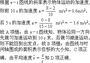 A.前10 s物体的加速度为0.8 m/s2,后5 s物体加速度为-1.6 m/s2