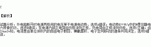 C.在电源内部正电荷由负极流向正极,负电荷由正极流向负极