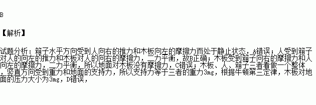 D.若人用斜向下的力推箱子,则木板对地面的压力会大于3mg