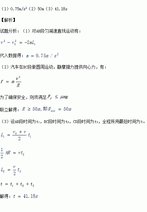 (3)轿车A点到D点全程的最短时间。(保留三位有效数字)